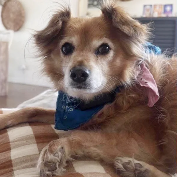 Cooper is a distinguished, 10-year old copper-colored gentleman with a touch of silver around his muzzle. He is about 17 pounds and is probably a terrier mix. He’s calm, confident, and loves to keep an eye on his people (and the house!). Cooper is a world-class cuddler, a hiking buddy, and the ultimate end-of-bed companion.
