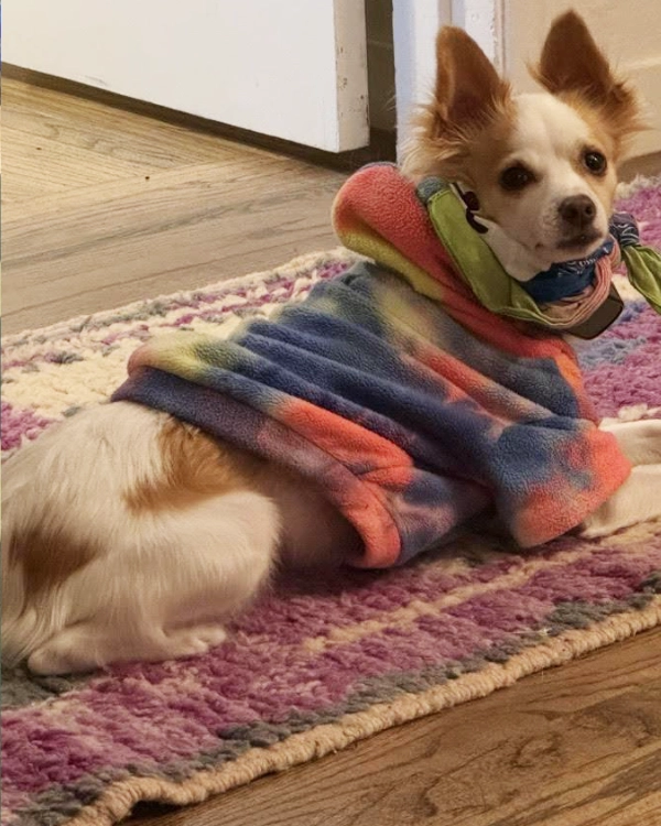 Olive is a sweet, 4-year old chihuahua mix with elegant long legs and soft ears that make her look like a model. She is a petite girl at about 7 pounds and is affectionate, gentle, playful, and absolutely loves cuddles, too — she’ll happily perch on your shoulder like a baby and melt into your arms.