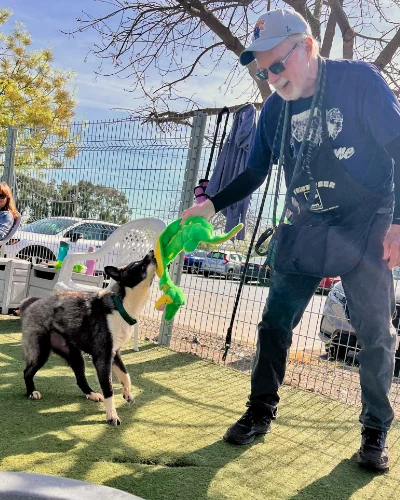 Reality is — shelter dogs spend a LOT of time in their kennels. Most Sunday mornings you will find us at the shelter outdoor play areas. Our volunteers are providing walks, play time, light agility or confidence building, food puzzles, obedience training, and plenty of belly rubs.