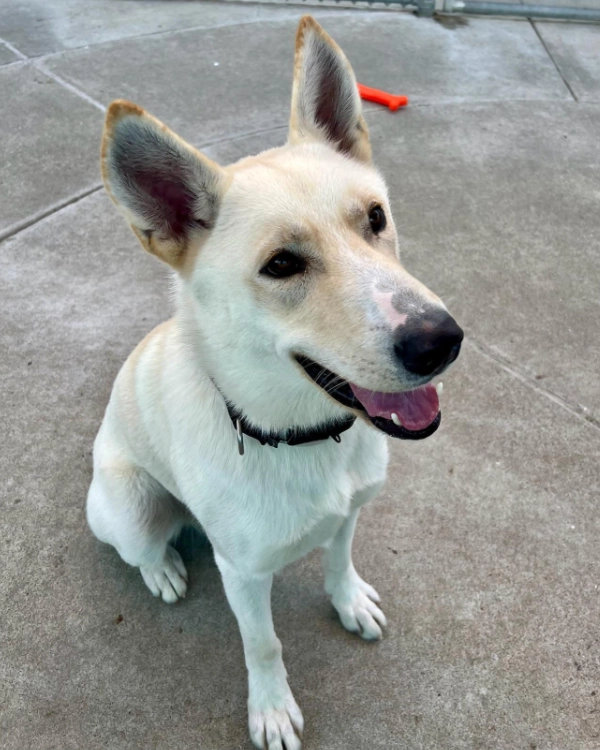 Snowy loves playing with toys and chasing balls! He’s an energetic dog who loves to explore his surroundings and then come back to see his person. He’s very smart and learns quickly when he’s motivated by food. Snowy also enjoys being brushed and is such a handsome dog!
